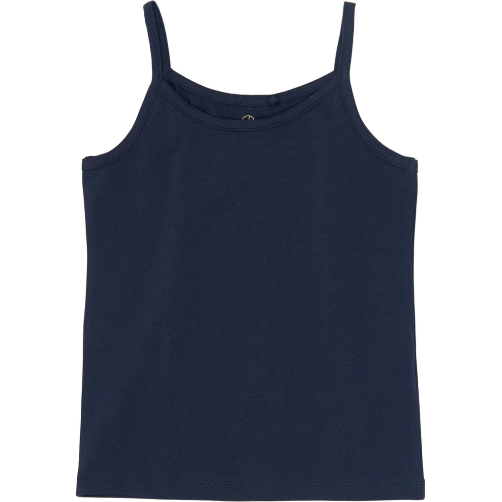 This 2-pack of girls’ strap tops is designed for underwear and layering. Both styles have thin spaghetti straps, a rounded neckline, and a straight hem that sits smoothly under clothing. One top is solid, while the other features an allover wavy check pattern. The fabric is 95% organic cotton and 5% elastane, offering stretch for a flexible fit. Suitable under T-shirts, shirts, or dresses, and can also be worn with shorts or skirts in warm weather.