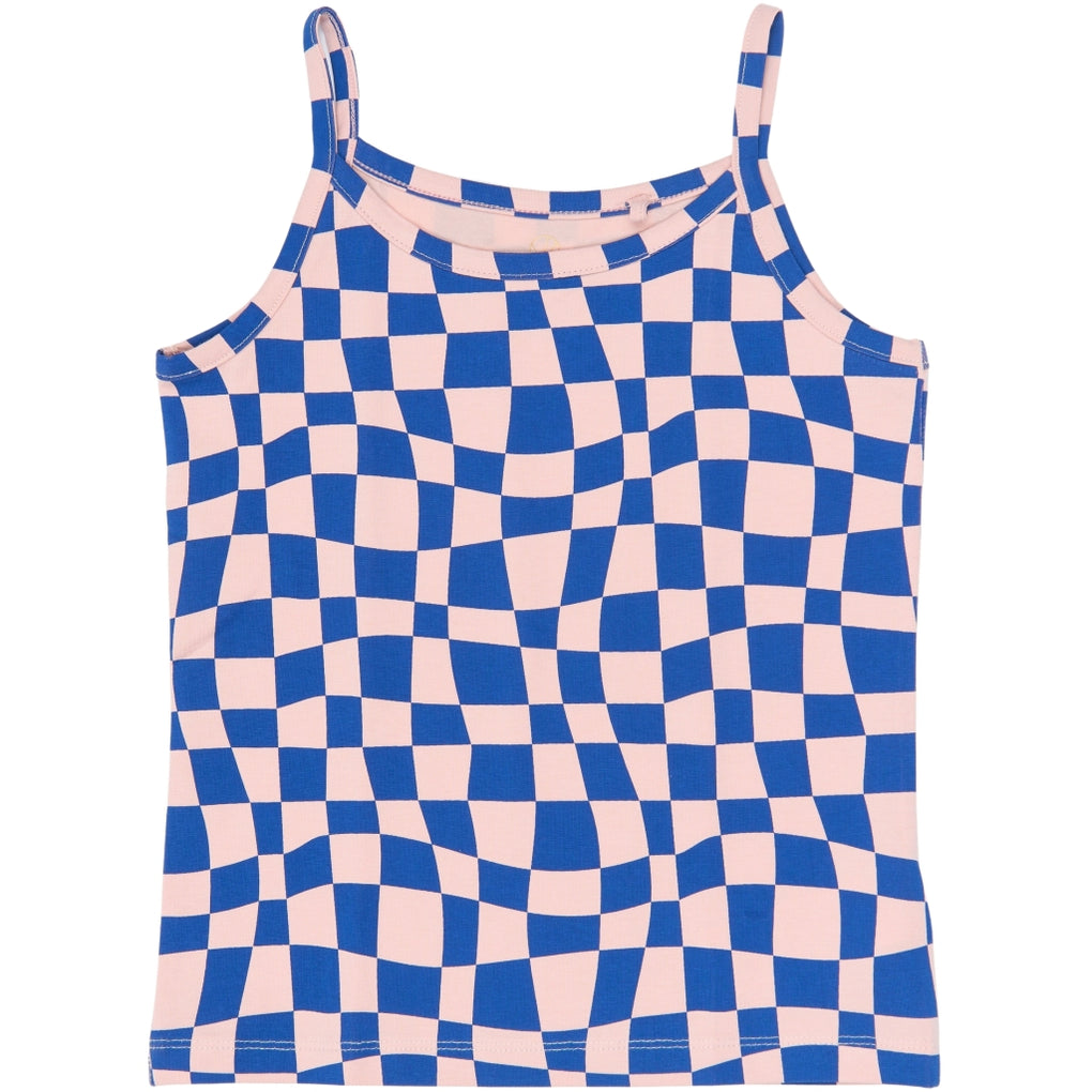 This 2-pack of girls’ strap tops is designed for underwear and layering. Both styles have thin spaghetti straps, a rounded neckline, and a straight hem that sits smoothly under clothing. One top is solid, while the other features an allover wavy check pattern. The fabric is 95% organic cotton and 5% elastane, offering stretch for a flexible fit. Suitable under T-shirts, shirts, or dresses, and can also be worn with shorts or skirts in warm weather.