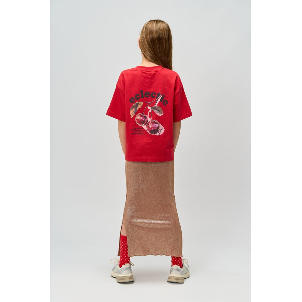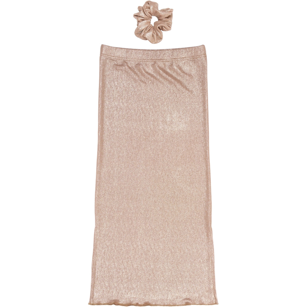 En elegant og glitrende lang nederdel fra THE NEW med en let transparent effekt, der tilfører et feminint og sofistikeret udtryk. Den perfekte pasform fremhæver silhuetten, mens Babylock detaljen i bunden af nederdelen giver et delikat touch. Den matchende scrunchie fuldender det feminine outfit. Perfekt til festlige arrangementer!