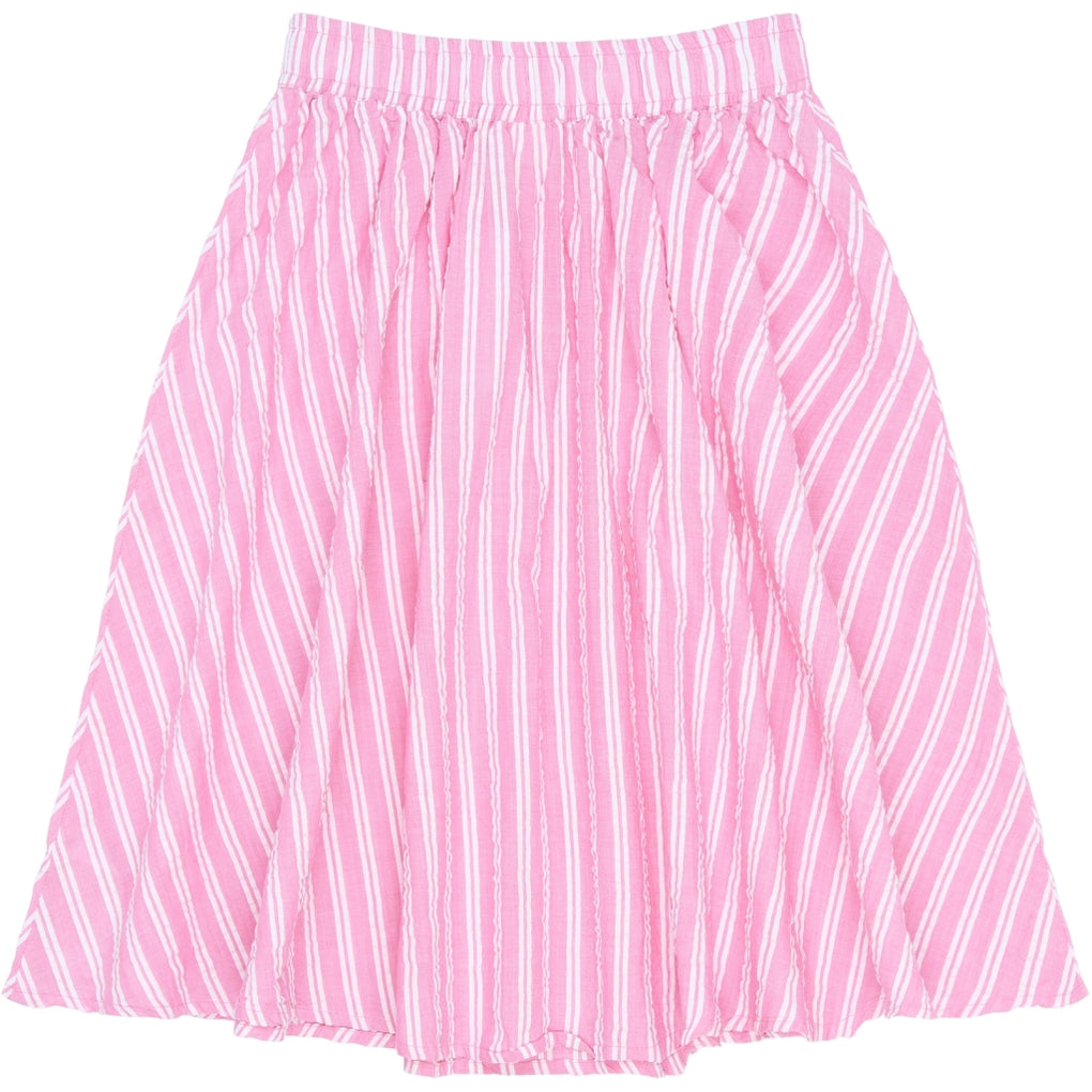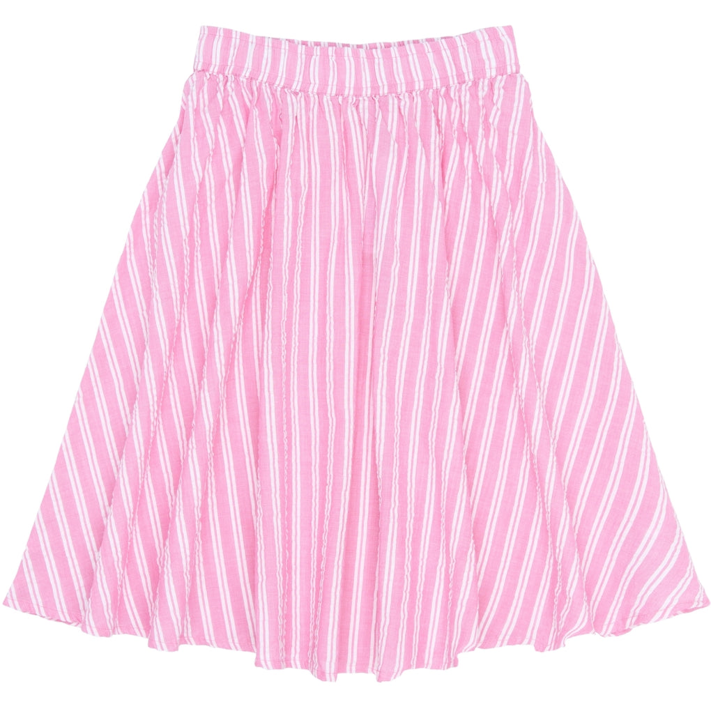 Denne fine nederdel er skabt til leg og hverdagsglæde med sit lette udtryk og feminine striber i rosa og hvid. Den har en behagelig, elastisk talje, som gør den nem at få af og på, og som sidder godt hele dagen. Den luftige vidde får nederdelen til at svinge flot, uanset om den styles med en T-shirt eller en strik. Materialet er 100% bomuld, som føles blødt mod huden og giver god komfort i både skole og fritid. Et oplagt valg til piger, der elsker et farverigt og ubesværet look.