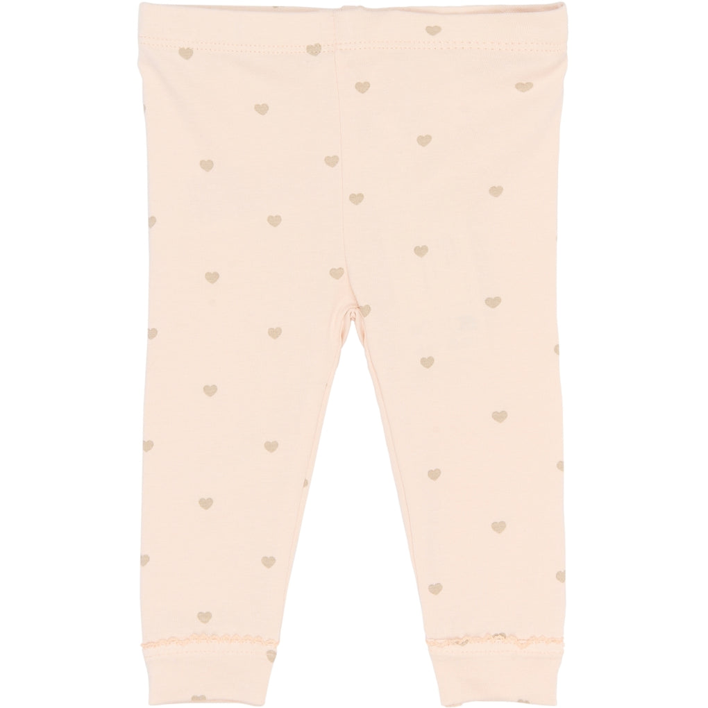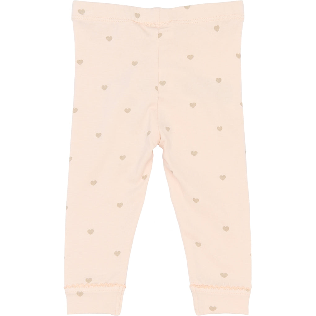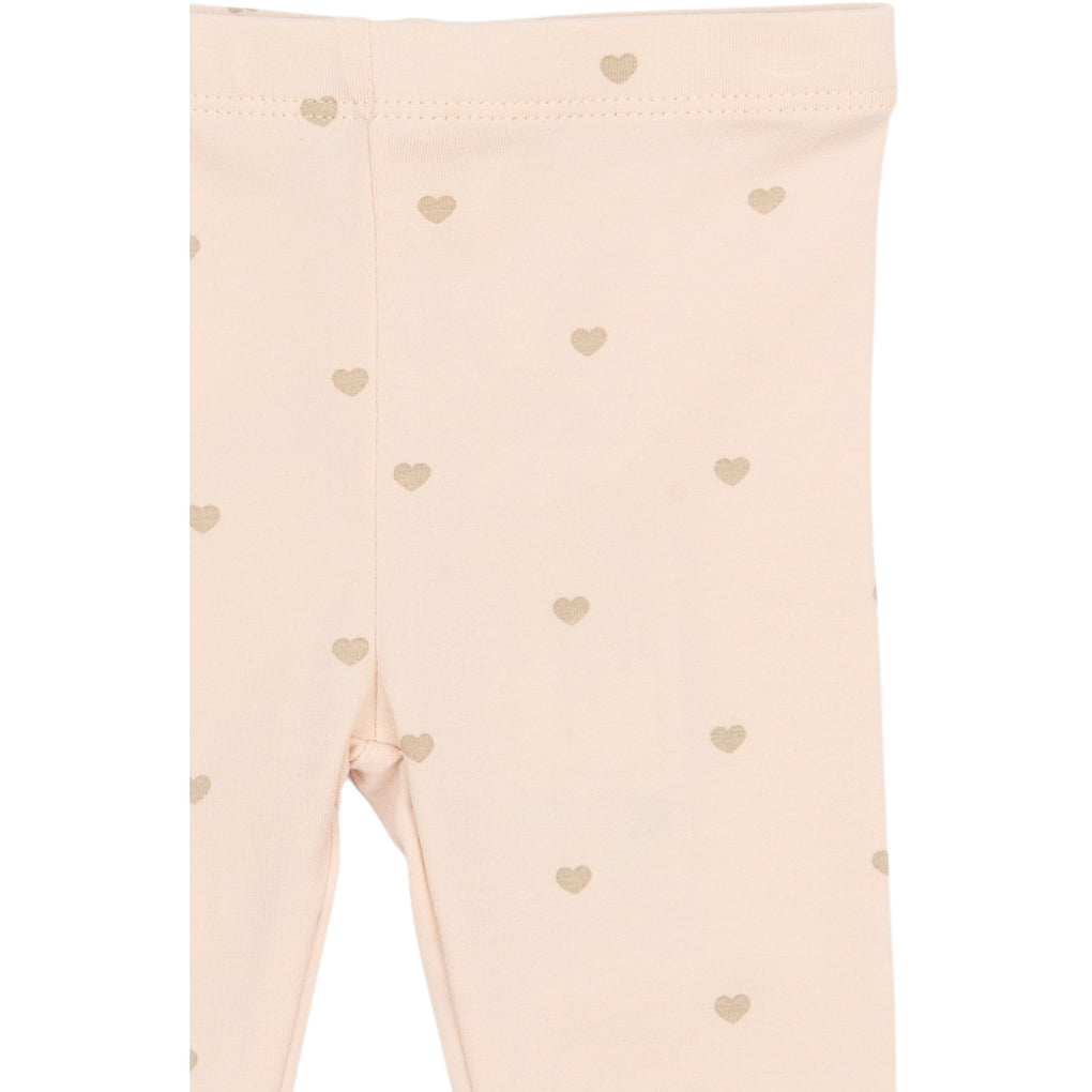 TNSBNova Leggings fra THE NEW SIBLINGS er leggings til baby pige i 95% økologisk bomuld og 5% elastan med let stræk. Modellen har elastisk talje, fuld benlængde og en tætsiddende pasform, der følger kroppen. Designet har et allover hjerteprint, og nederst ved benene er der en smal blondekant som detalje. De er nemme at kombinere med bodyer, kjoler eller tunikaer og fungerer godt som lag under andre dele. Et praktisk valg til både hjemme og tur.