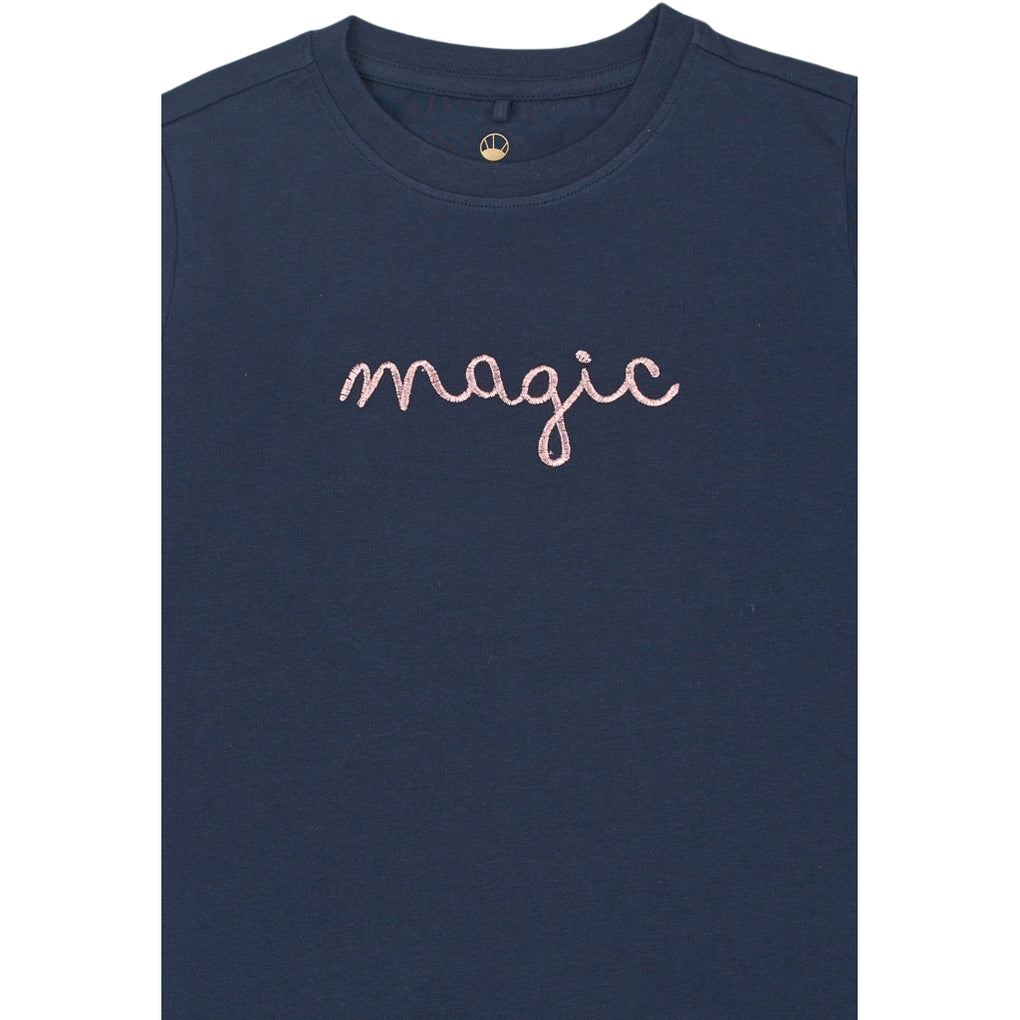 Denne tætsiddende t-shirt fra THE NEW kombinerer elegance med komfort på den bedste måde. På brystet er ordet "Magic" smukt broderet, hvilket giver et subtilt og stilfuldt statement. Ved maven er der en rynkedetalje, der skaber en feminin og behagelig pasform, som følger din krops form på en flatterende måde. Denne t-shirt fås i to farver og er ideel til at tilføje et strejf af magi til dit outfit, uanset om du styler den til hverdag eller fest.