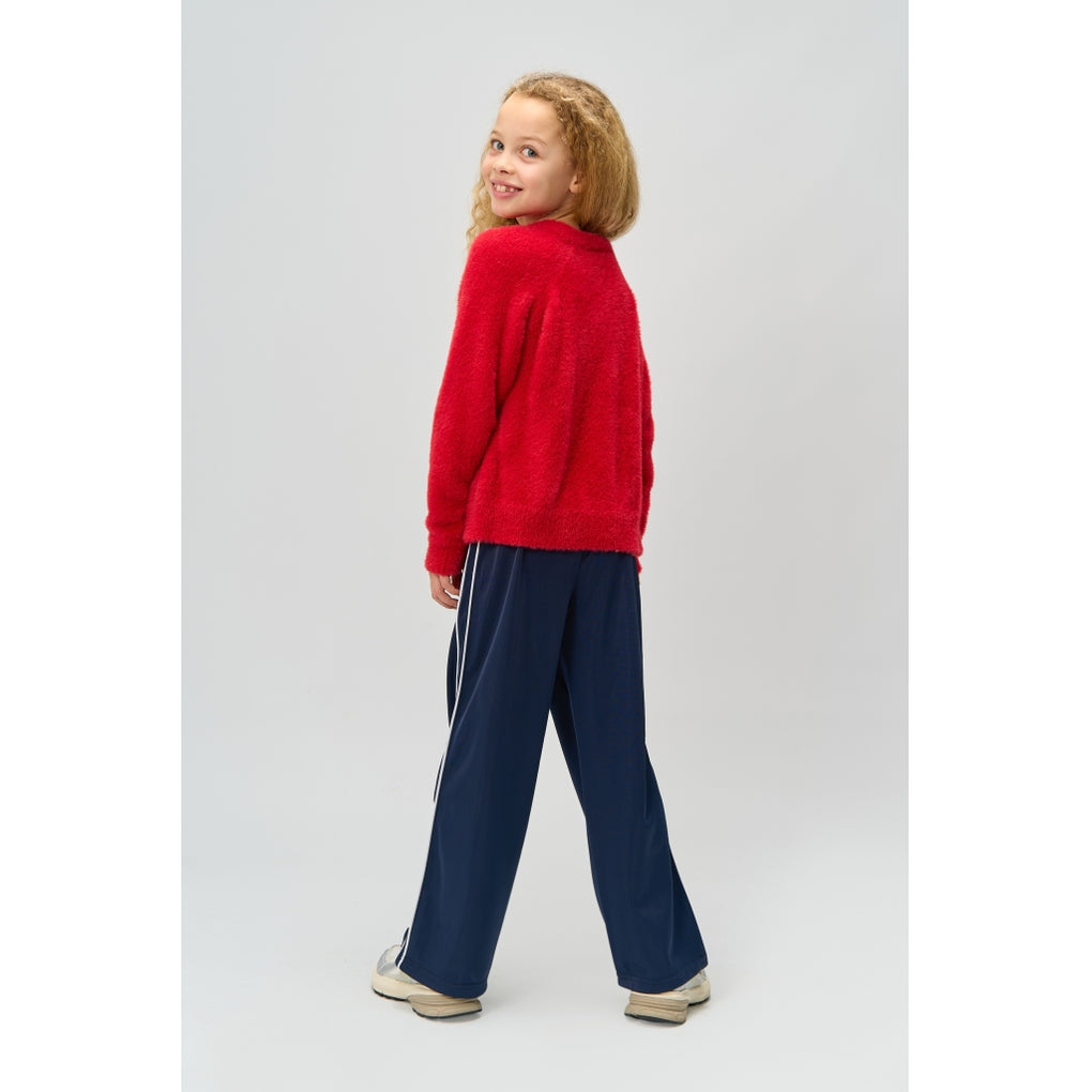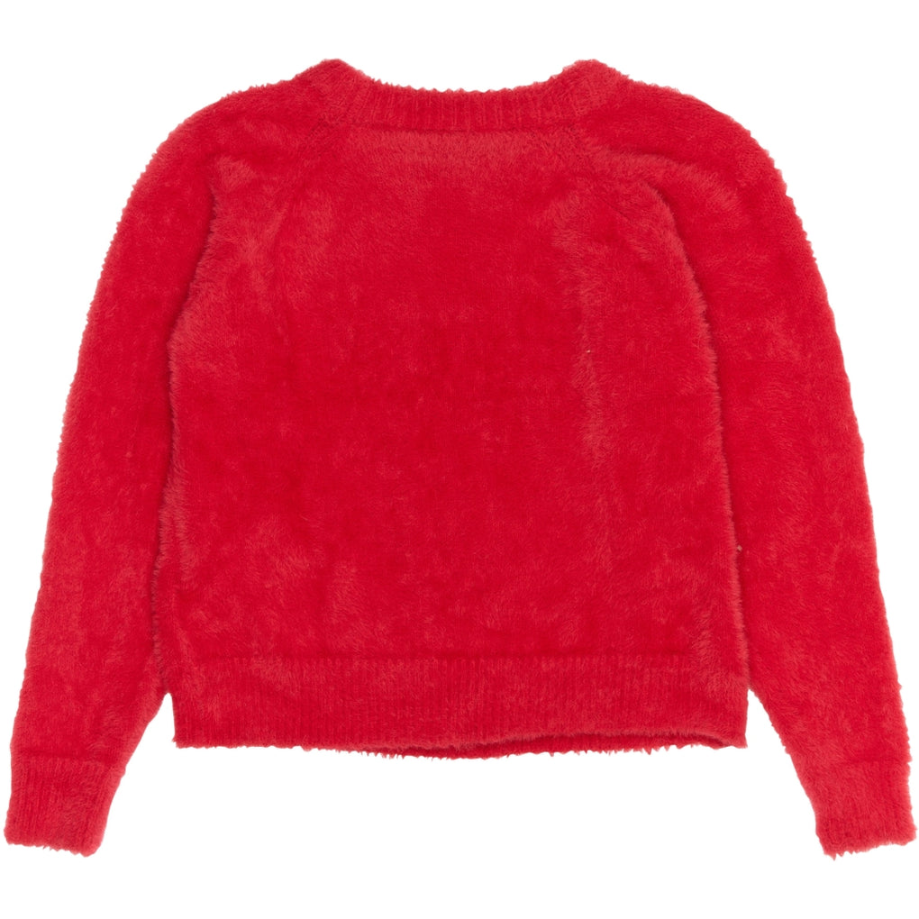 Forkæl dig selv med denne bløde og stilfulde røde knit pullover fra THE NEW. Strikken har en let fluffy overflade, der giver en ekstra behagelig og luksuriøs fornemmelse. Den dybe røde farve skaber et elegant og iøjnefaldende look, mens den afslappede pasform sikrer maksimal komfort. Ribdetaljer ved halsåbningen, ærmekanterne og bunden af trøjen tilføjer en klassisk finish og giver et flot, struktureret udtryk. Perfekt til både hyggelige hverdage og mere festlige anledninger.