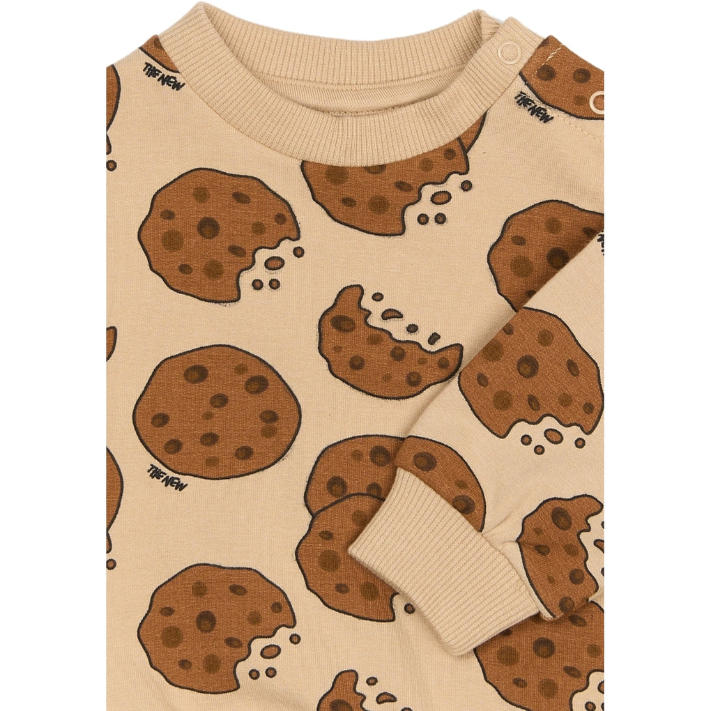 Denne sweatshirt fra THE NEW Siblings bringer sjov og komfort ind i hverdagen med sit iøjnefaldende all-over print af småkager. Den har en afslappet pasform og er designet med ribkanter ved hals, ærmer og bund, som sikrer en god og fleksibel pasform. Perfekt til små kageelskere og til både leg og hygge. Kan sammensættes med de matchende TNSBRene Sweatpants.