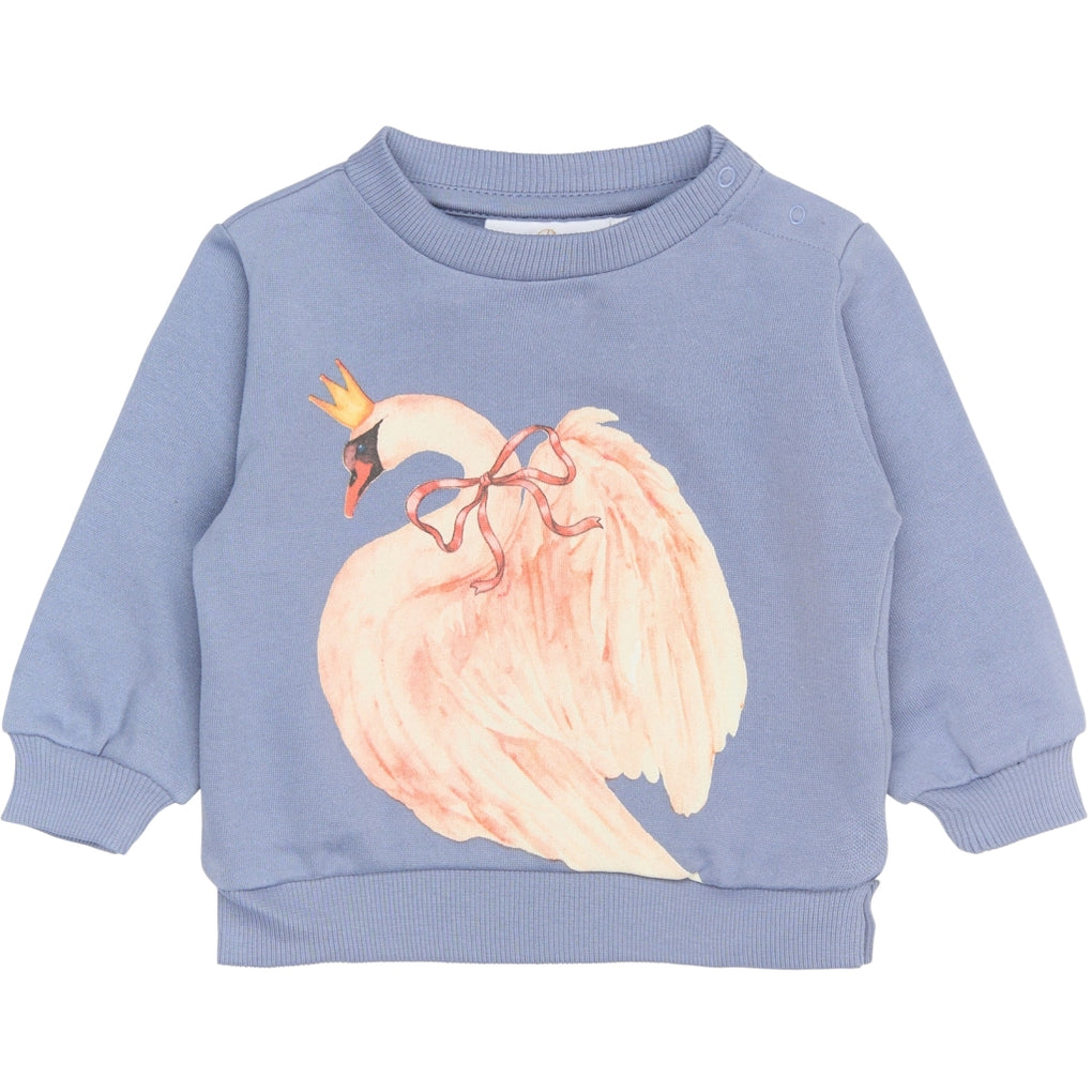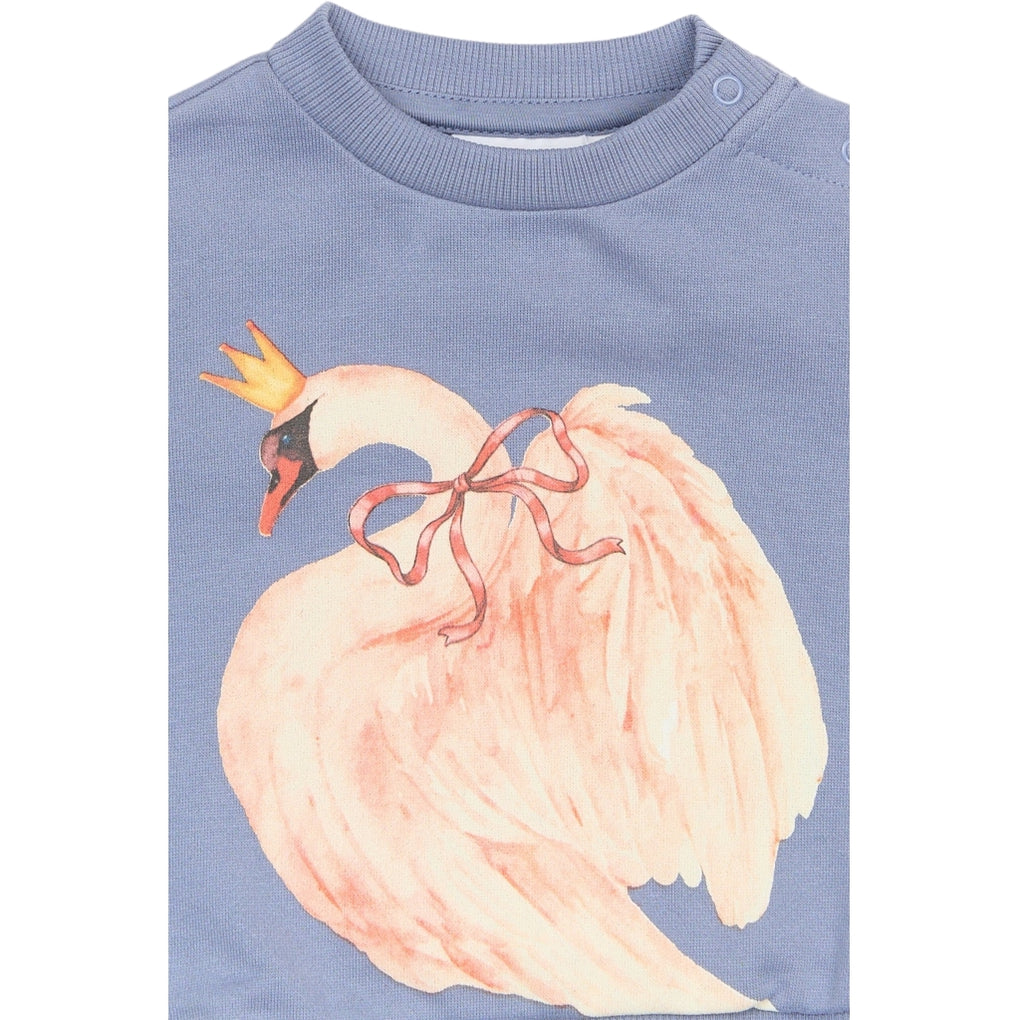 Denne sweatshirt fra THE NEW Siblings kombinerer komfort og fantasi i ét sødt design. Den er dekoreret med et smukt frontprint af en svane med krone, som tilfører et eventyrligt og charmerende udtryk. Sweatshirten har en afslappet pasform og klassiske ribkanter ved hals, ærmer og bund, som sikrer en behagelig og fleksibel pasform. Fås i to farver.