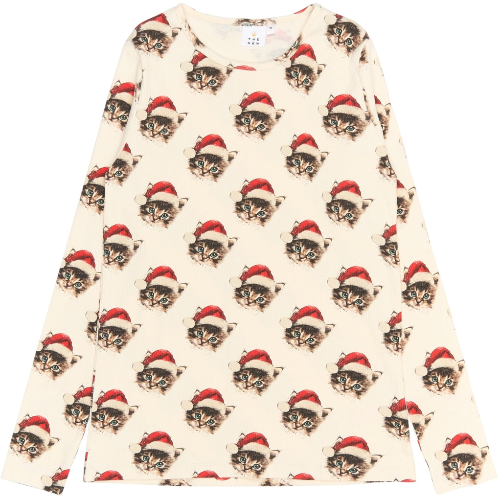 TNHoliday Adult Rib Nattøj - Gardenia Cat AOP