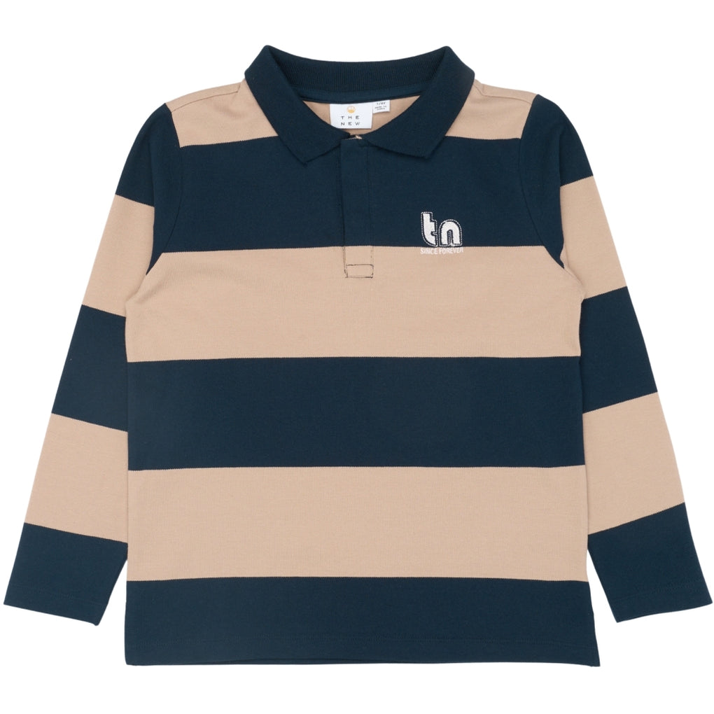 Denne TNRhett Pique Polo fra THE NEW bringer et sporty og klassisk twist til garderoben. Den er designet med brede horisontale striber og har en traditionel polokrave med knaplukning, der giver et tidløst udtryk. Den lange ærmelængde gør den ideel til overgangssæsoner, og det broderede logo på brystet tilføjer et enkelt, men genkendeligt touch. En alsidig style, der fungerer både til hverdag og pænere anledninger.