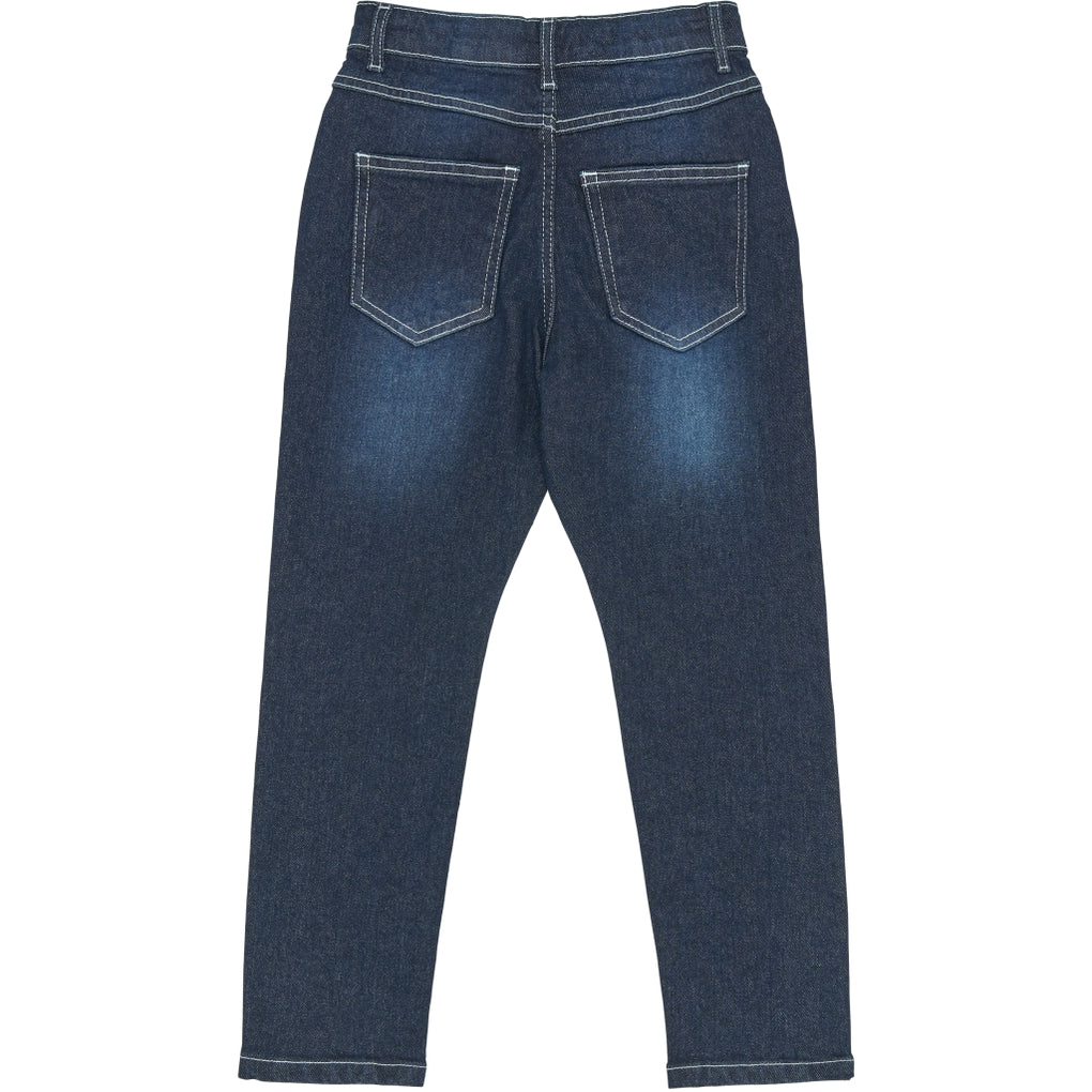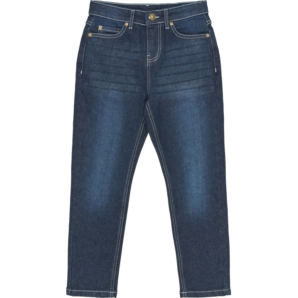 TNJosh Tapered Fit Jeans fra THE NEW er et par klassiske drengejeans i mørk denim med diskrete lysninger. Den tilspidsede pasform sidder pænt ved anklerne uden at stramme, så der er masser af bevægelsesfrihed til leg og hverdag. Fremstillet i 99% bomuld og 1% elastan for en blød følelse og et fleksibelt stræk, der holder formen. Modellen har fem lommer, markante stikninger og knaplukning foran for et tidløst udtryk. Nemme at style med både T-shirts og skjorter, uanset anledning.