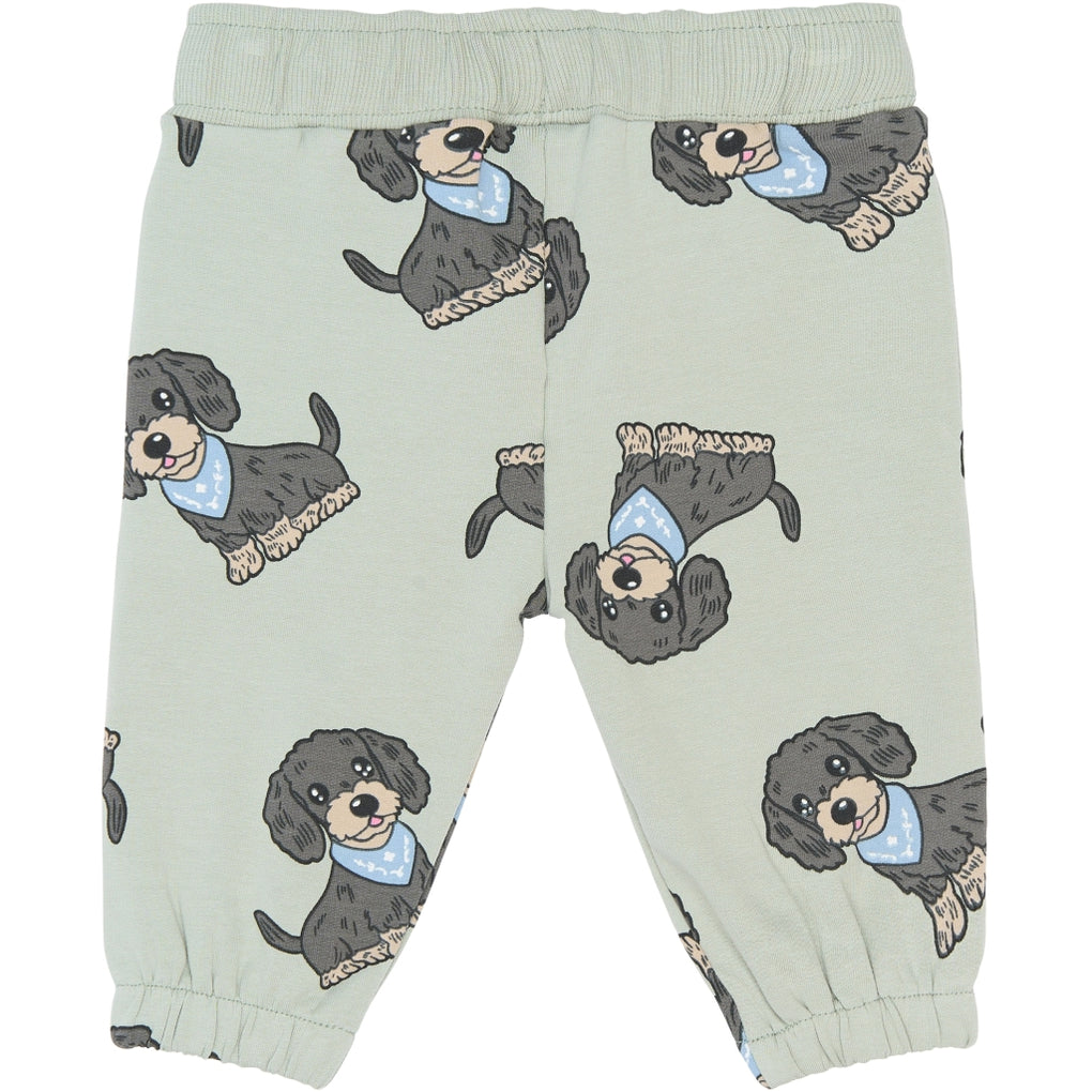 Disse sweatpants til baby dreng er lavet i en strækbar bomuldsblanding med elastan. Modellen har en bred, ribbet elastiktalje og elastik ved anklerne for en sikker pasform, der holder benene på plads. Benene er let tilspidsede, og det gennemgående hundeprint er tydeligt på hele modellen. Designet er let at kombinere med bodyer, T-shirts eller sweatshirts. Kan bruges året rundt og fungerer også godt som lag under overtøj.