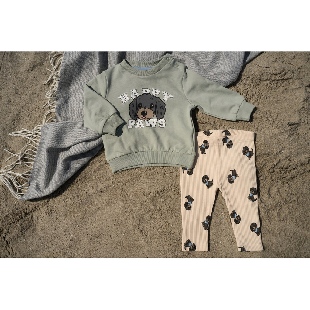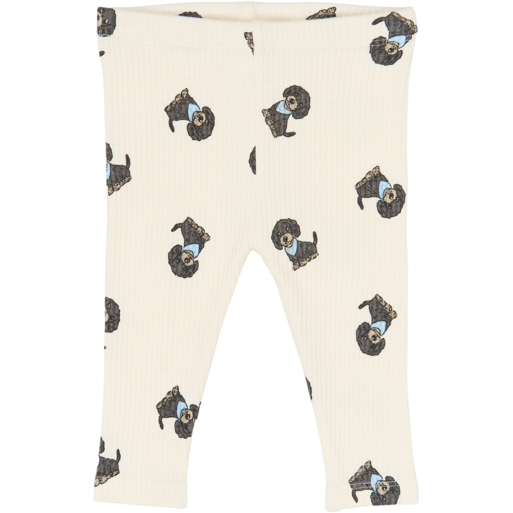TNSBSylvan Rib Leggings er leggings til baby dreng i en ribbet kvalitet af 95% bomuld og 5% elastan. Modellen har elastisk talje og en tætsiddende pasform, der følger kroppen. Stoffet har et all-over print med små hunde. Benlængden går til anklerne, og ribstrukturen giver fleksibilitet i bevægelserne. Velegnet både alene og som lag under bodyer og trøjer.