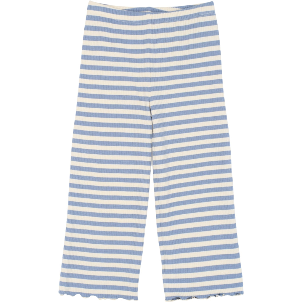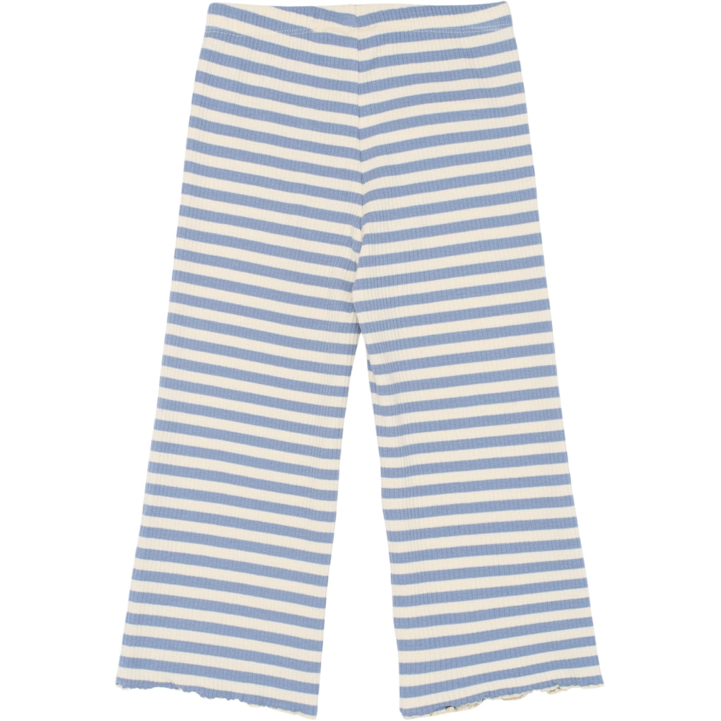 Disse bukser fra THE NEW Siblings er en sød og komfortabel style med et legende udtryk. De er lavet i blød og strækbar ribkvalitet og har et klassisk stribet design samt bølgede kanter ved benene, der tilføjer et feminint touch. Den elastiske talje sikrer en god og fleksibel pasform hele dagen. Fås i to farver og kan nemt styles med en matchende top for et komplet sæt.
